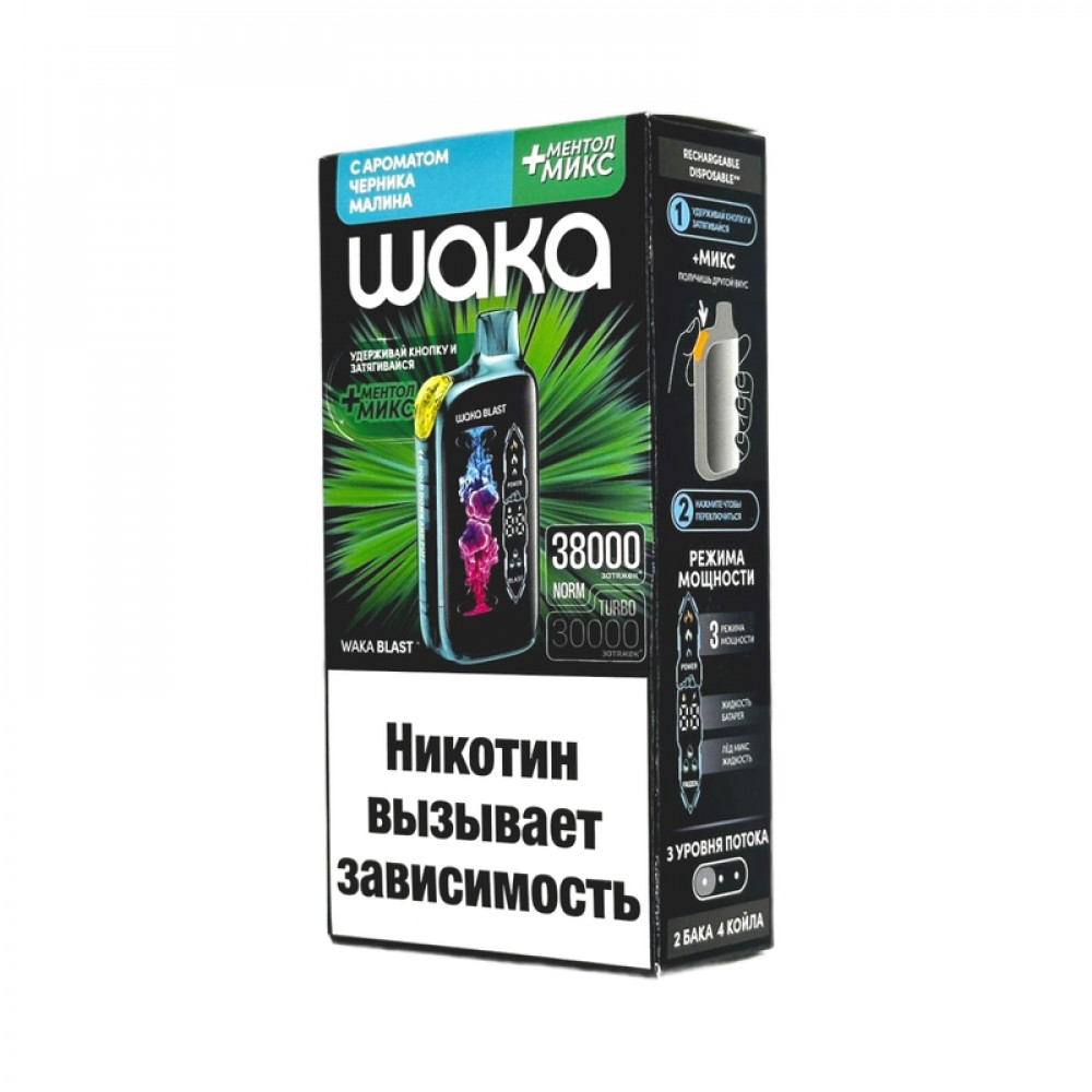 WAKA BLAST 38000 Hard - Черника малина + ментол микс - купить в Великих Луках